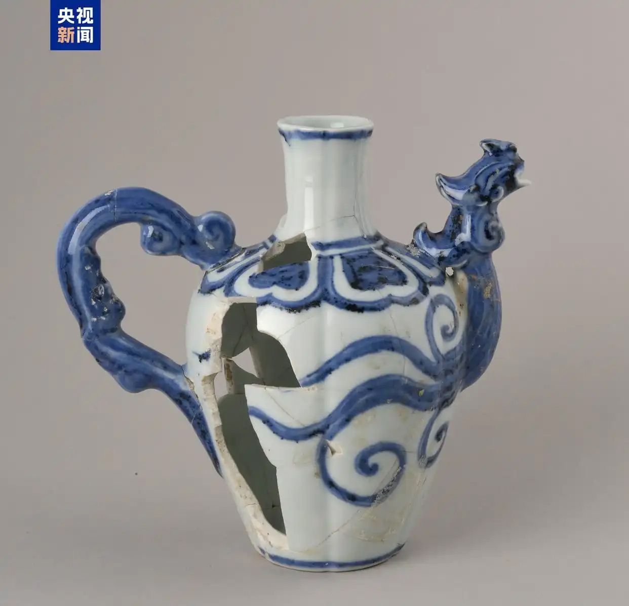御窑厂出土凤首执壶。(图片来源:央视新闻客户端)
