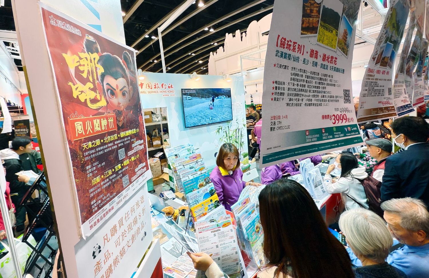 一家参展旅游企业响应近期热映的动画电影《哪吒2》,推出哪吒相关主题的内地旅游项目。