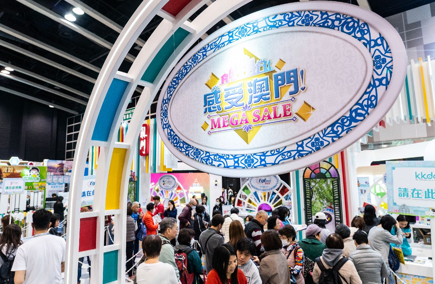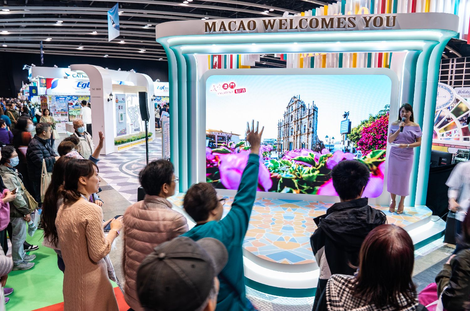 澳门特区旅游局展区的互动问答活动吸引参观者答题。