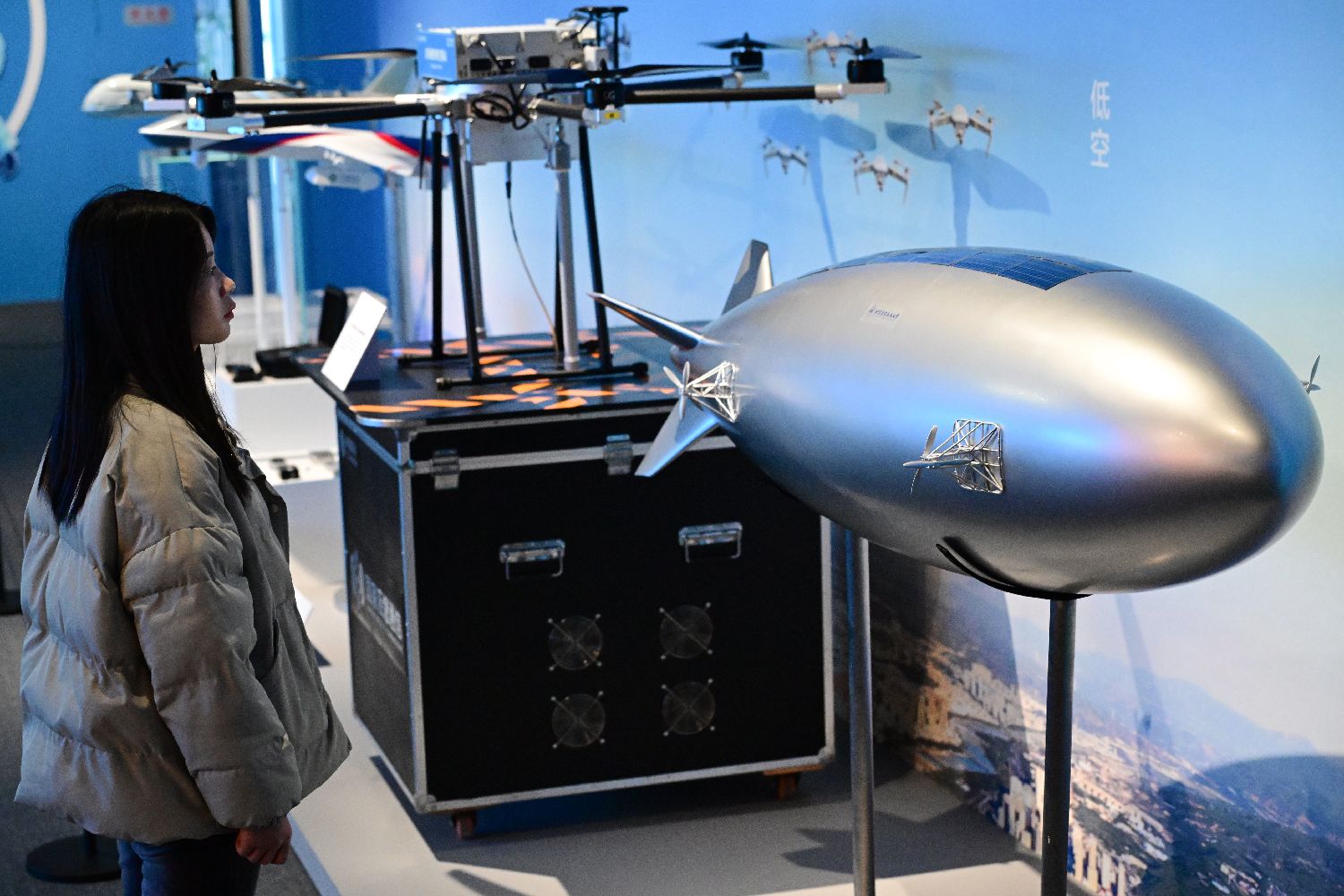 参观者在观看展出的长航时高空平台系统模型。(图片来源:中新社)