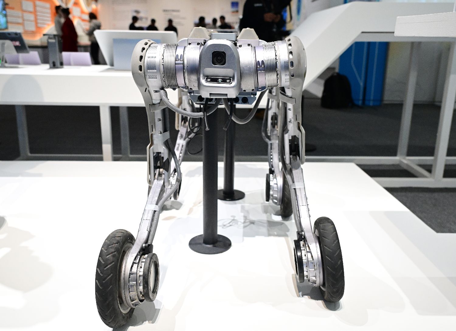 展出的B2-W工业轮足机器狗。(图片来源:中新社)