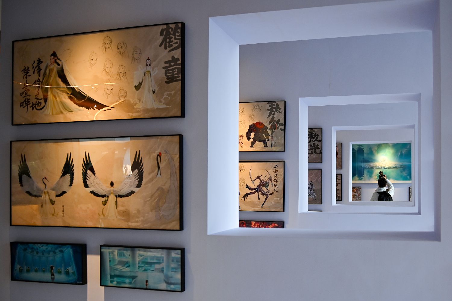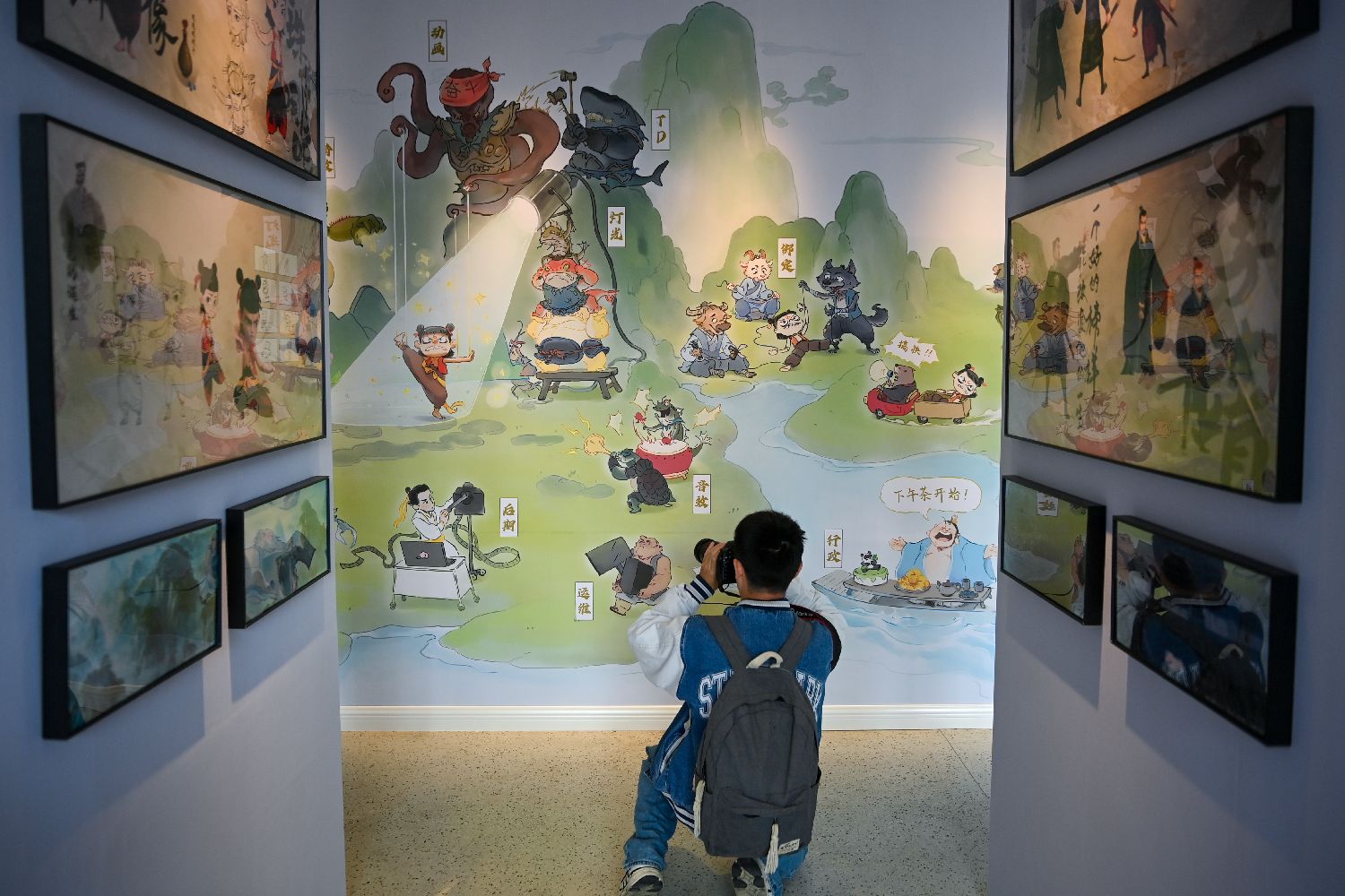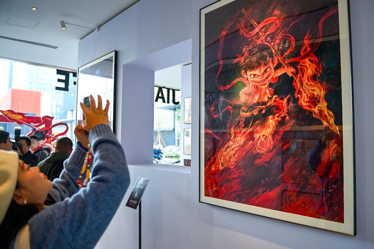 电影《哪吒之魔童闹海》幕后创作展吸引参观者。(图片来源:中新社)