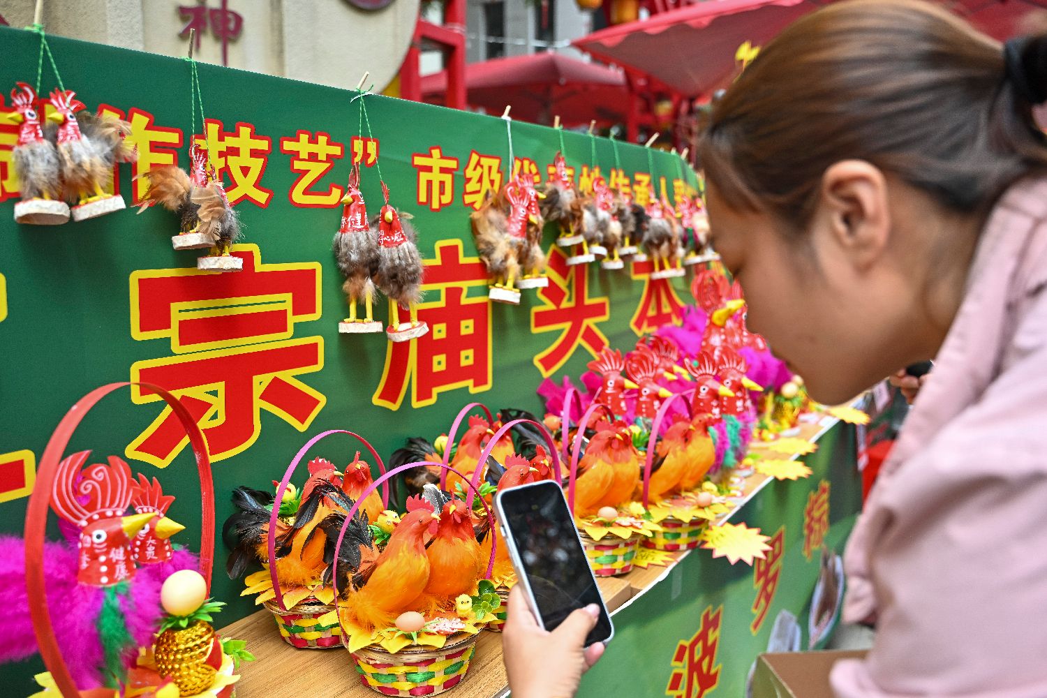 波罗鸡工艺品吸引市民。(图片来源:中新社)