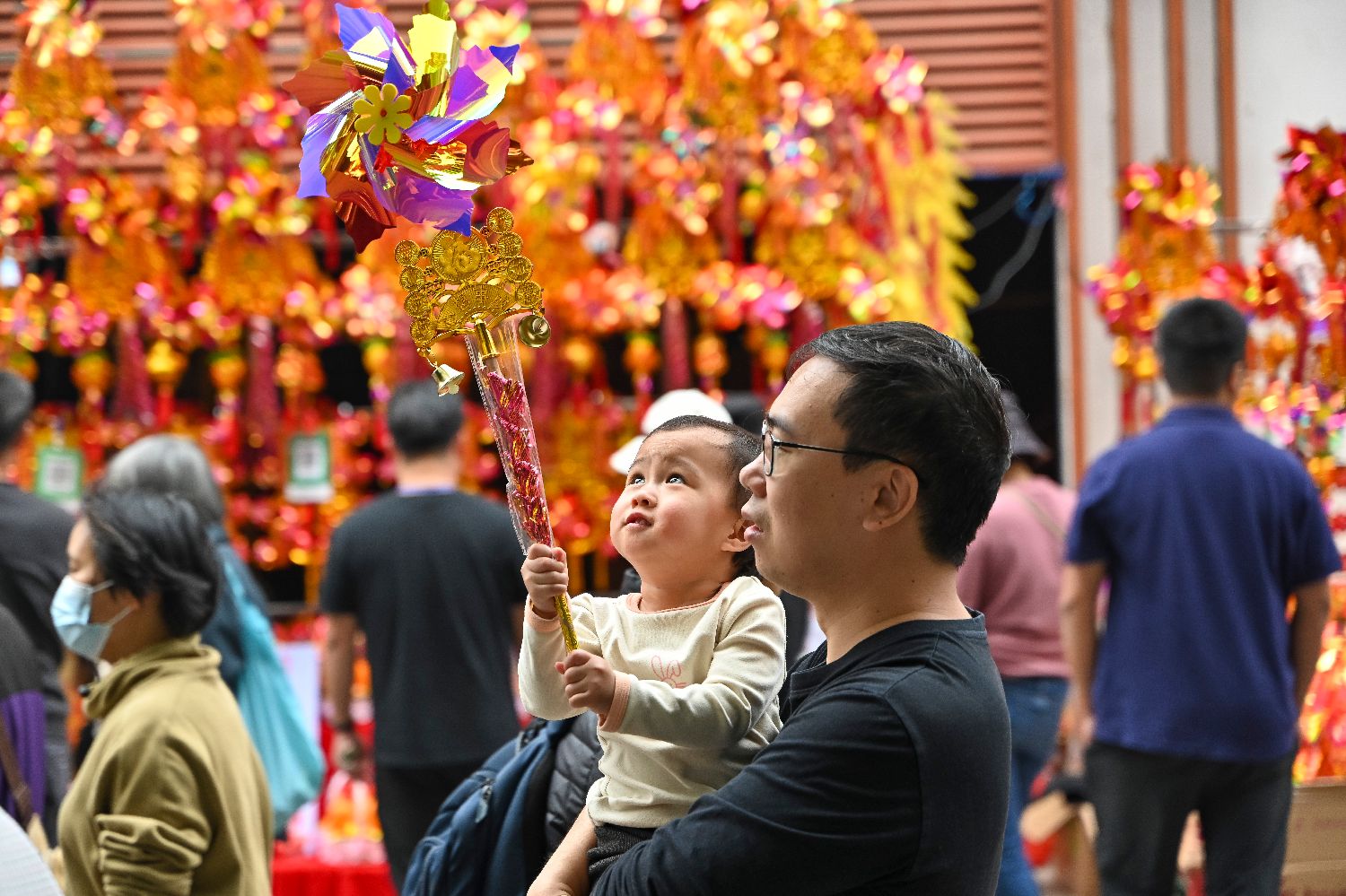 小朋友手持风车在“波罗诞”游玩。(图片来源:中新社)