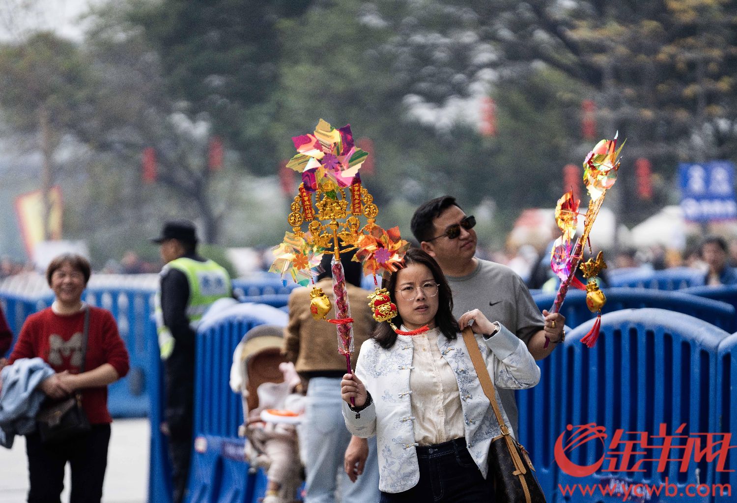 据悉,3月10日至3月14日,庙会还设置了工艺集市、美食街区,方便游客从景区出来便可购买特色工艺品以及享受中国各地各式美食小吃,满足不同年龄群体消费需求。图为庙会现场。(图片来源:广东金羊网)