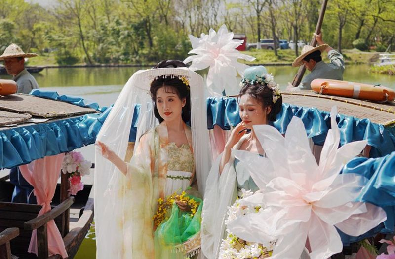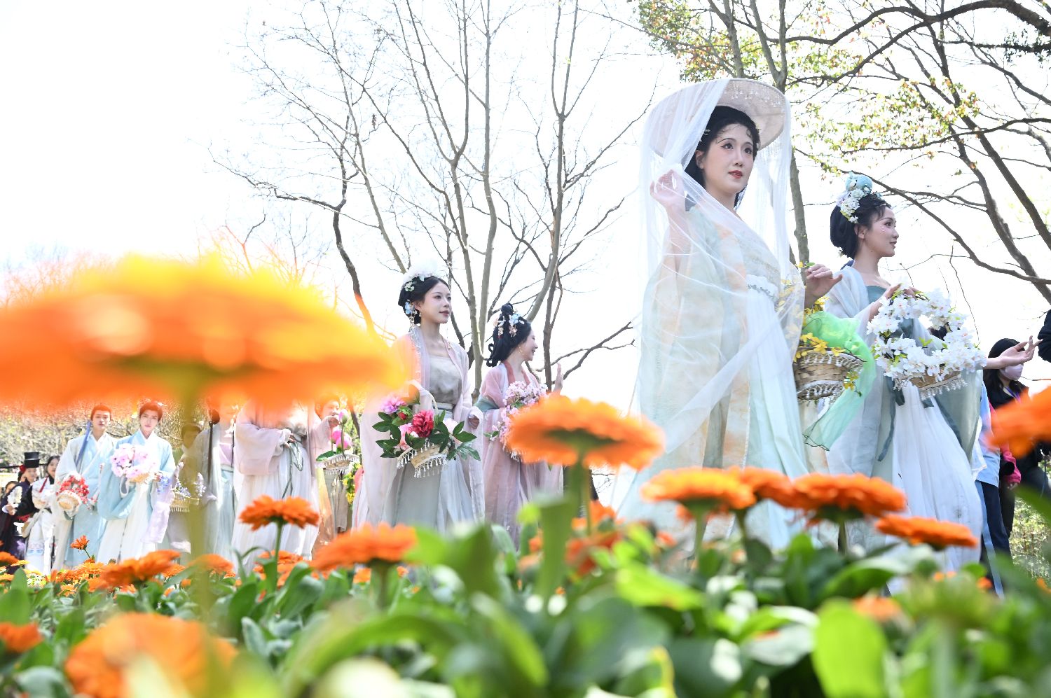 据悉,西溪湿地还制作了24集微短剧《花开满芳塘》,于花朝节期间在西溪湿地视频号、抖音号等自媒体上同步播出。图为宋韵“十二花神”巡游。(图片来源:北京人民网)