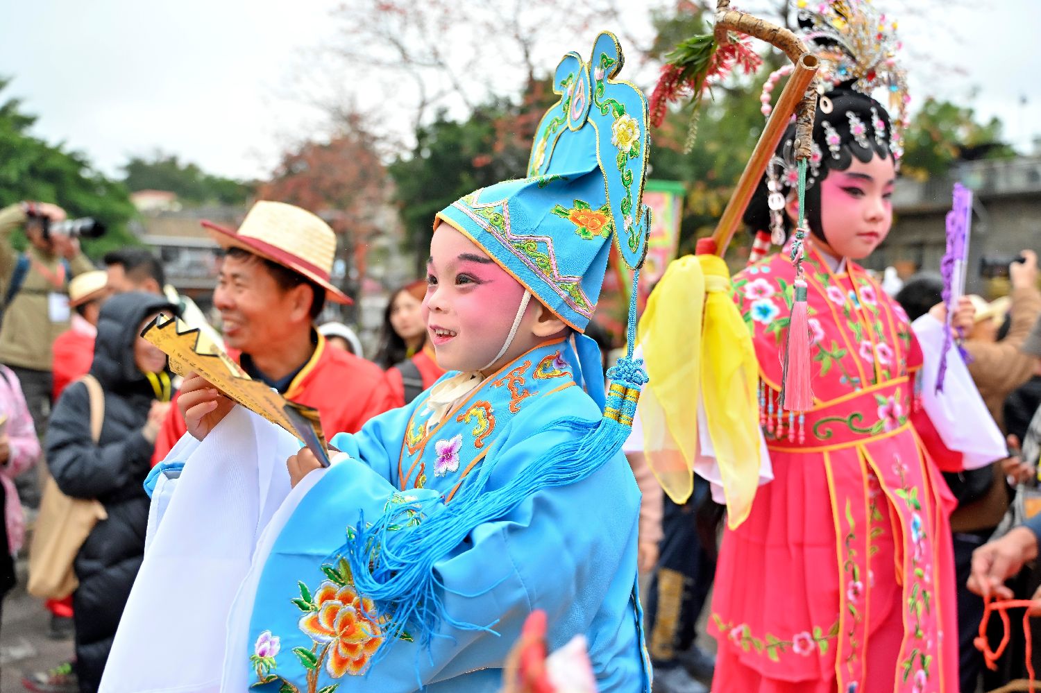 身着特色服装的飘色小演员。(图片来源:中新社)