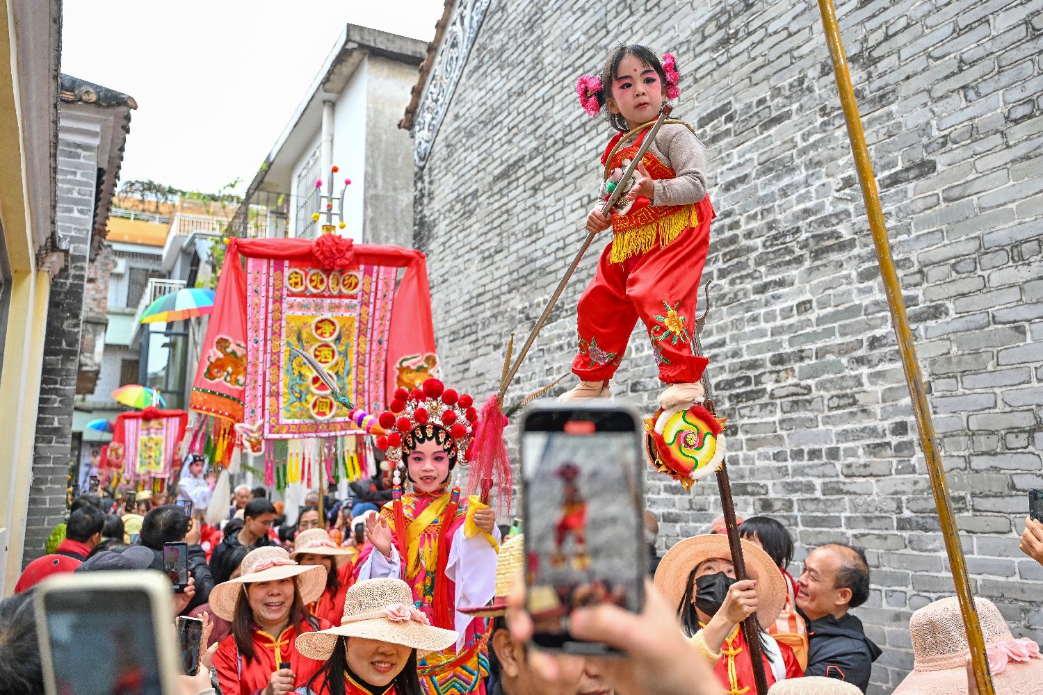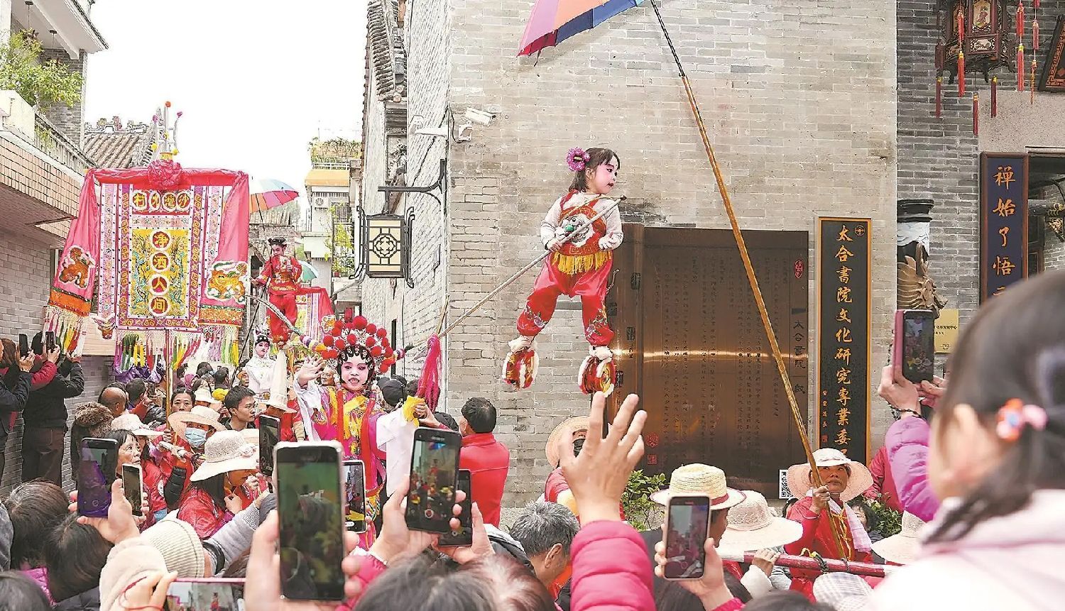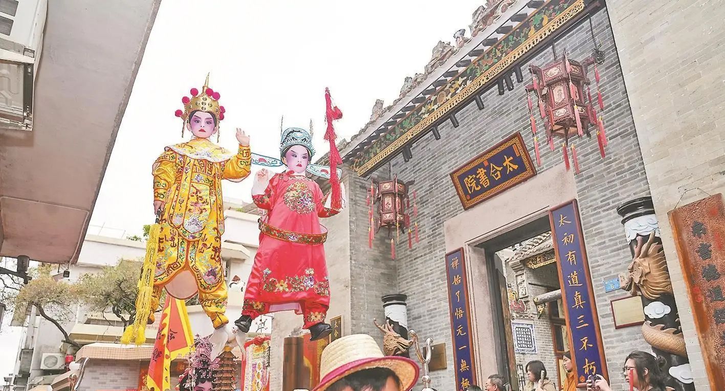 作为岭南飘色艺术的发源地,沙湾古镇以“一飘一色一故事”的特色传承文化基因。(图片来源:广东金羊网)