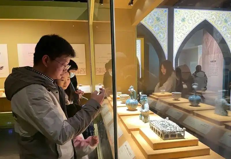观众可以看到伊朗的动植物、工艺品传入中国的历史痕迹,如狮子、鸵鸟等动物形象以及广州藩坊遗址出土的波斯蓝釉陶;同时也能了解中国文化对伊朗的影响,如丝绸、瓷器等中国元素在伊朗艺术中的体现。(图片来源:北京《中国日报》网)