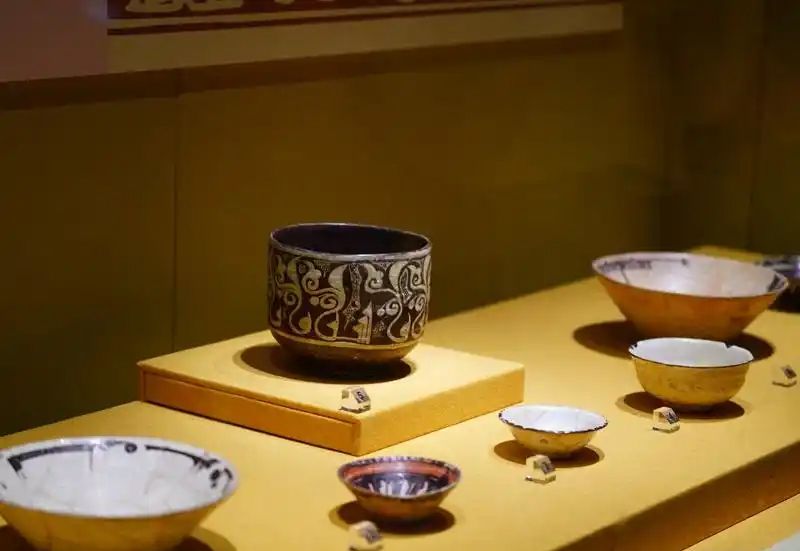 广东省博物馆“群星点亮的夜空——波斯文化艺术瑰宝展”中的陶器吸引观众。(图片来源:中新社)