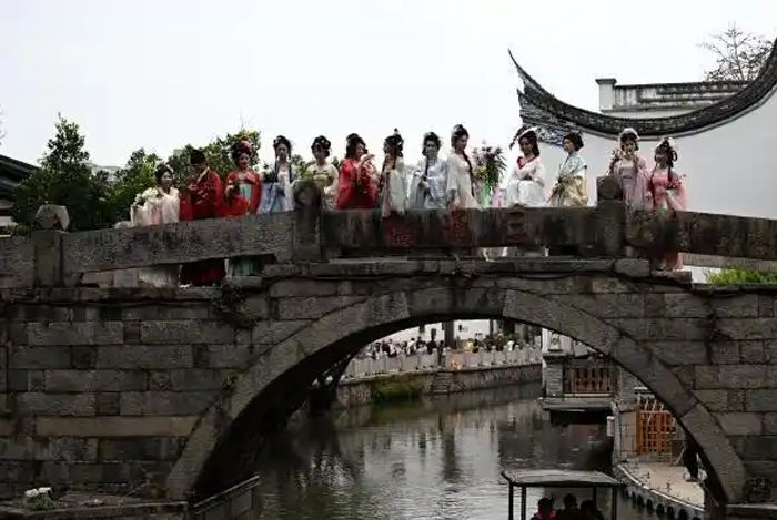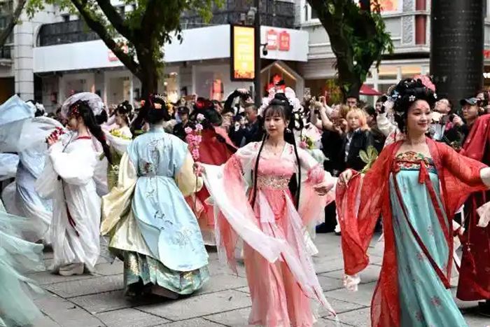 身穿汉服的女子扮演的“十二花神”带给游客精彩表演。