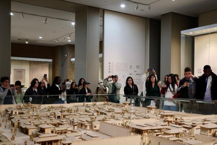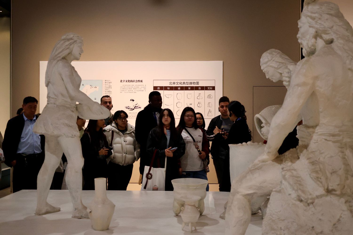 外籍留学生在齐文化博物馆参观稷下学宫遗址(复原)。