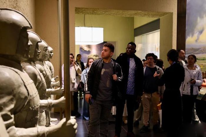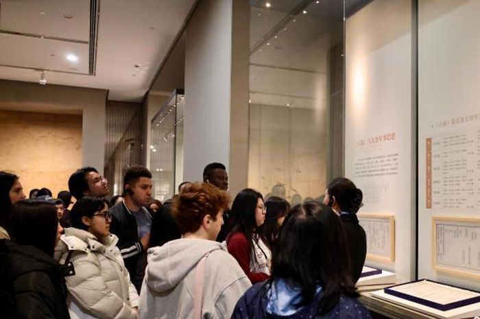 外籍留学生在齐文化博物馆了解《六韬》与姜太公军事思想。