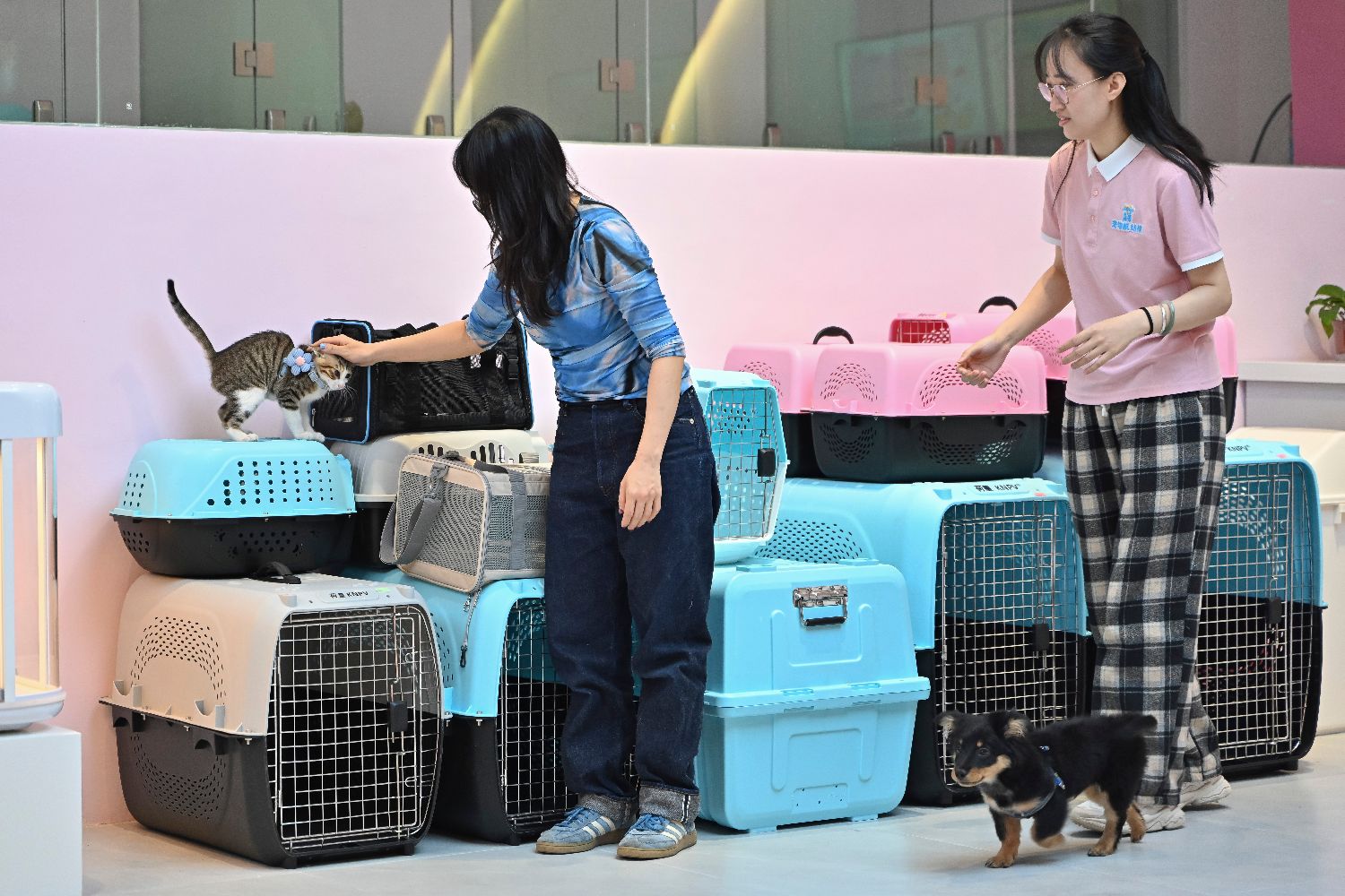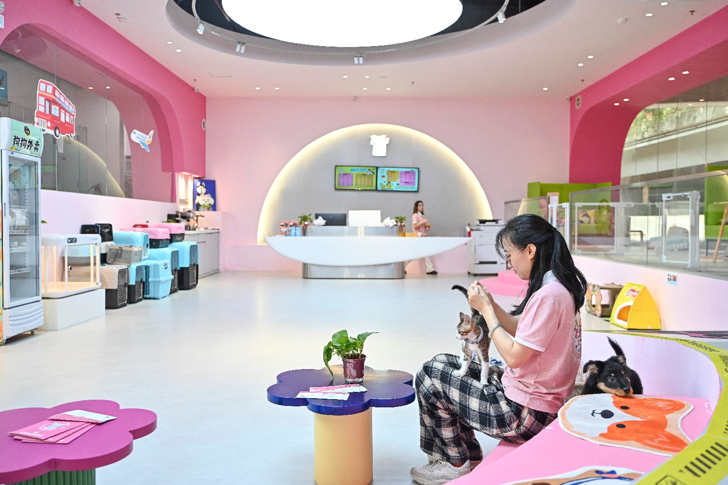 健康管理系统方面,建立“一宠一档”电子档案,精准记录饮食、运动、卫生等数据,实现全周期健康管理。图为宠物航站楼值机大厅。(图片来源:中新社)