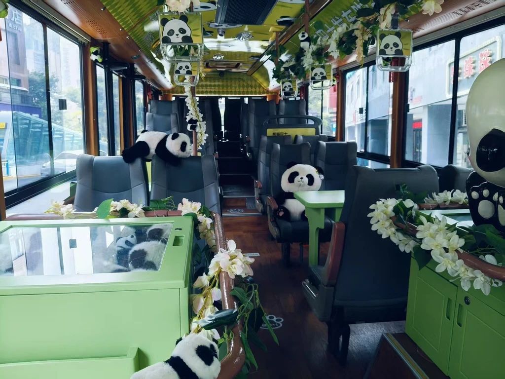 车内装饰处处是“熊猫”的影子,萌趣十足。(图片来源:重庆华龙网官方微博/西部公交)