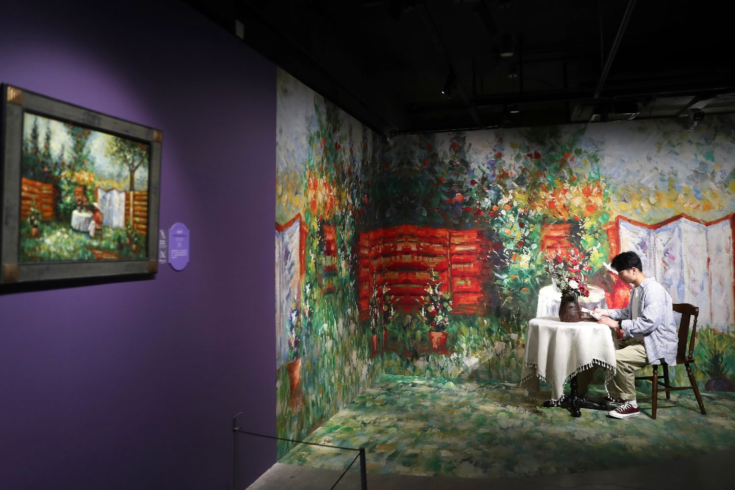探展嘉宾融入展览现场布置的油画场景中,实现沉浸式观展。