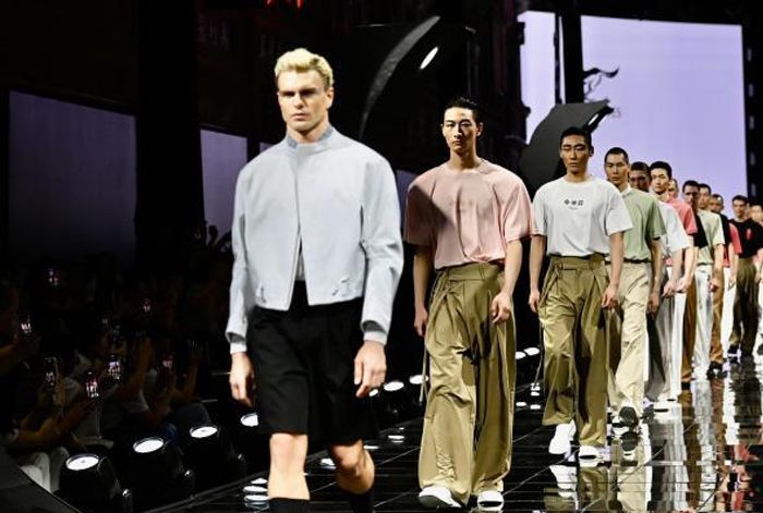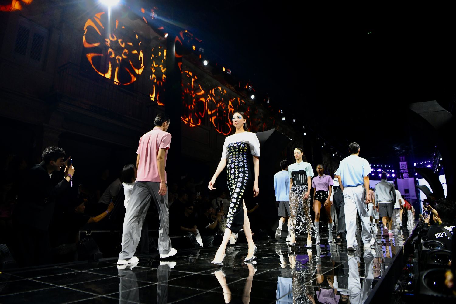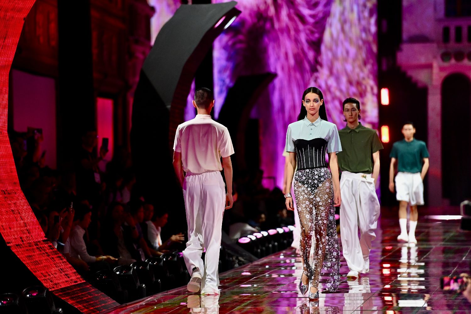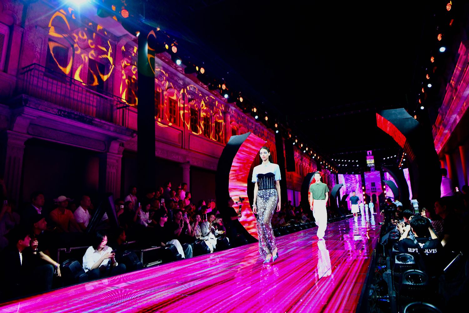 2025泉州时尚周开幕秀17日晚在具有百年历史的福建泉州中山路古街区举行。模特身着“漫彩之城”“经纬漫游”“刺桐霓裳”三大系列新品,将泉州白瓷釉色、簪花围纹样、靛蓝染布工艺等非遗元素融入现代剪裁,重现宋元商港的万种风情。