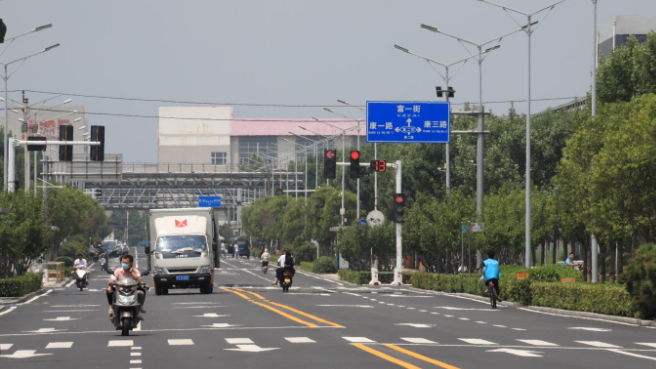 富士康郑州园区内的柏油路。(图片来源:中新社)