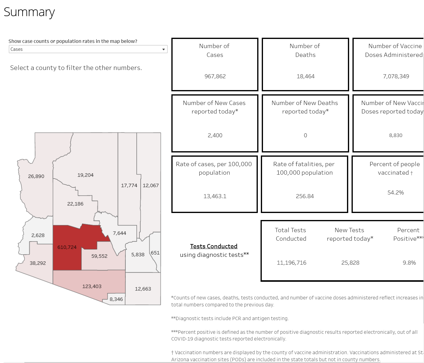 【本报综合讯】亚利桑那州卫生服务部周一上午报告了2,400例新病例,病亡无增减。累计967,862例感染和18,464例死亡。