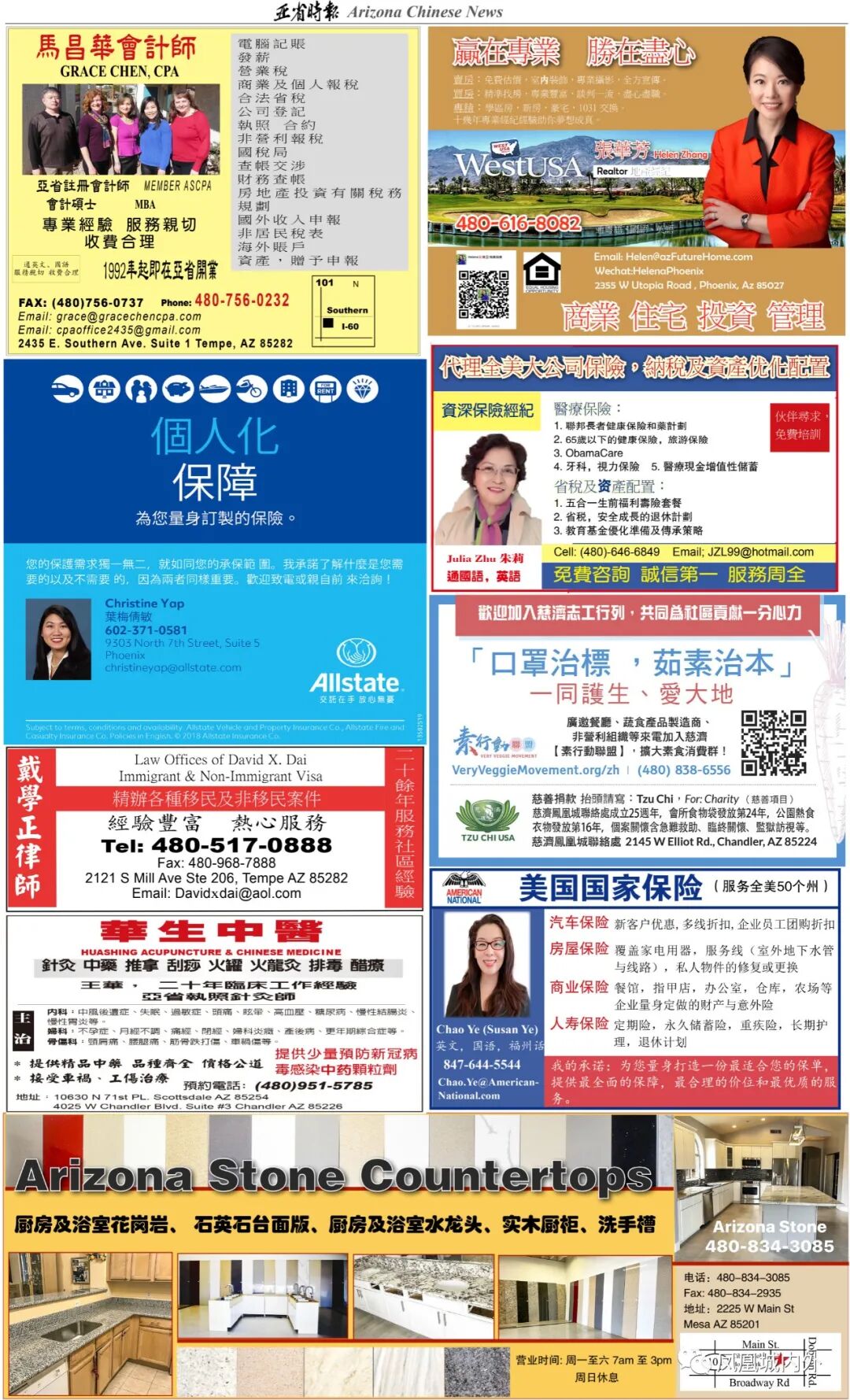 欢迎投稿,欢迎刊登广告电话:602-269-3062/480-748-7238电子邮件:azchinesenews@gmail.com官网http://www.azchinesenews1.com