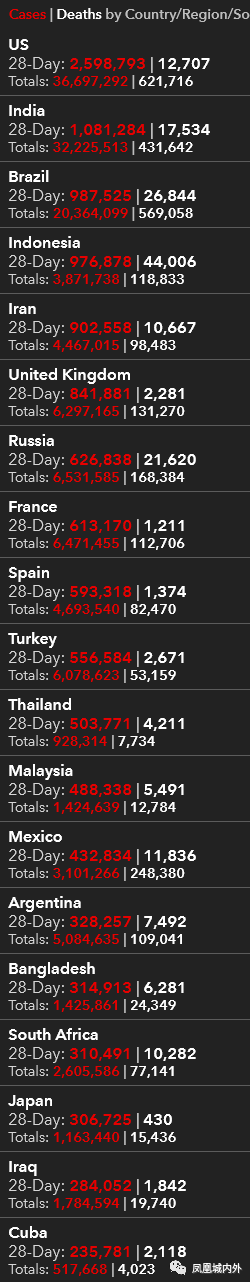 在美国,所有50个州和哥伦比亚特区都报告了确诊的COVID-19病例,总计超过36,680,287例感染病例和至少621,636人死亡。