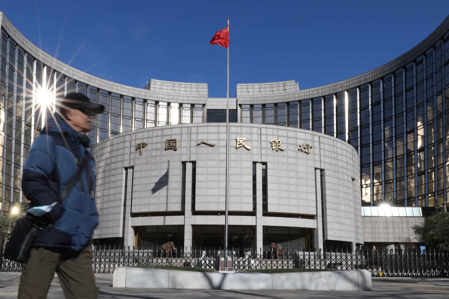图为市民经过位于北京的中国央行。(图片来源:中新社资料图)