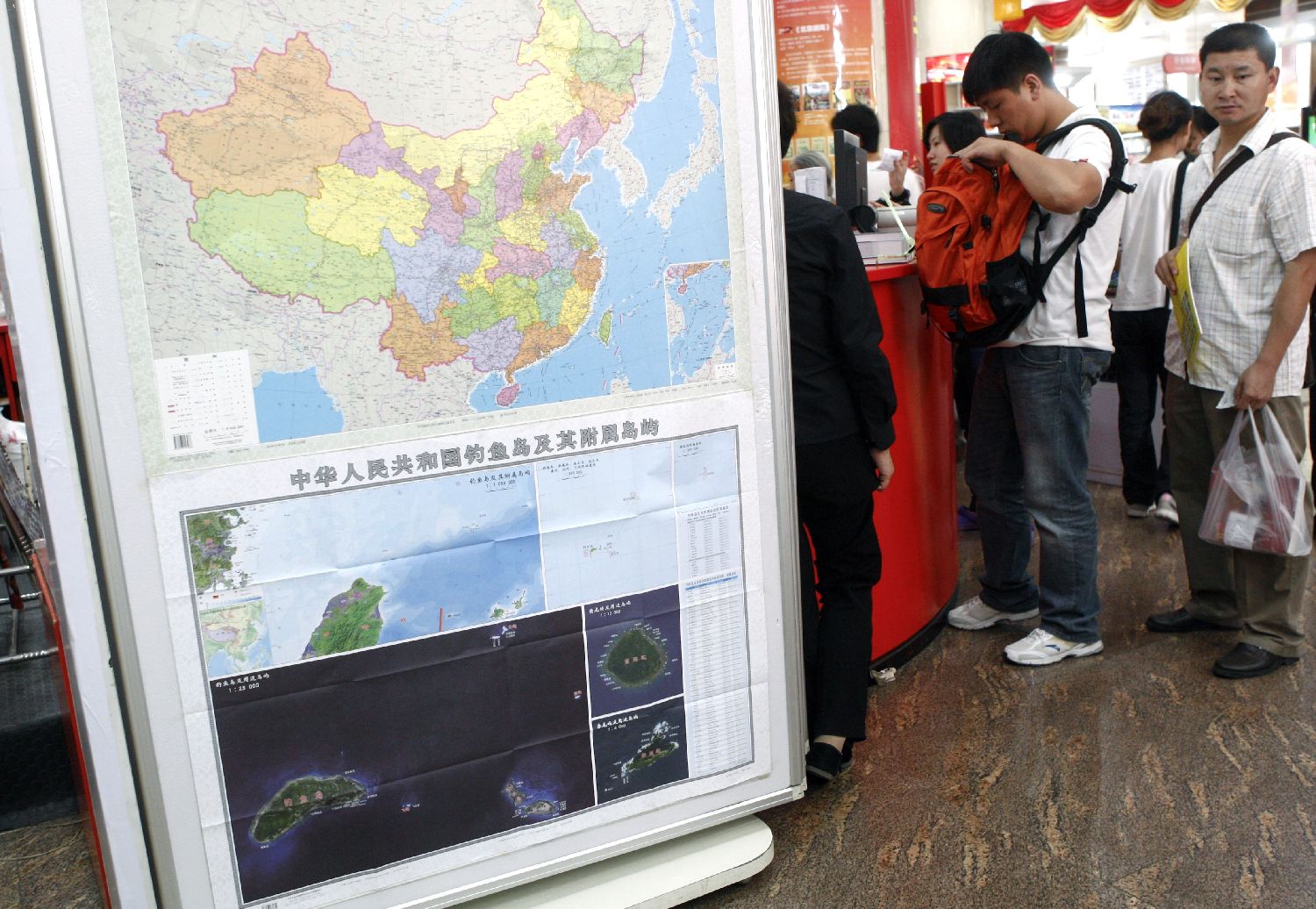 图为2012年9月21日,在北京王府井书店的地图专柜里展示的中国地图。(图片来源:中新社)