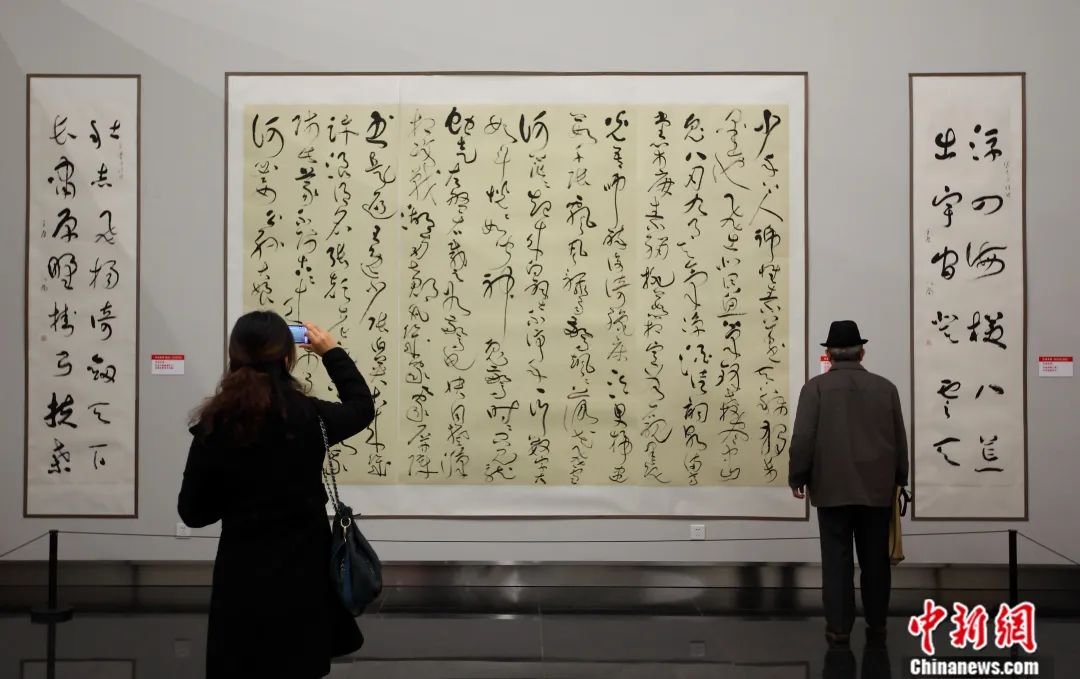 参观者在观看以李白诗文为内容的草书作品。(图片来源:中新网)