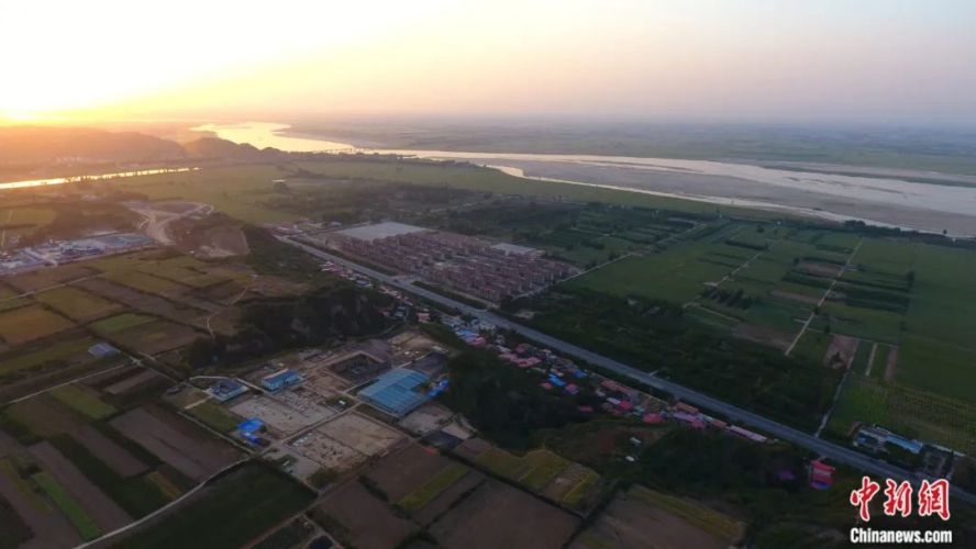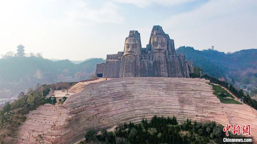 矗立在黄河畔的巨型炎黄二帝塑像。(图片来源:中新网)