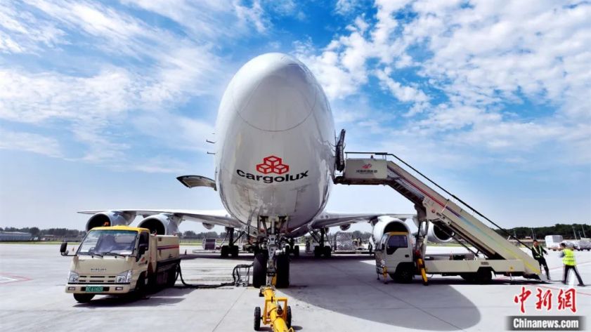 停靠在新郑国际机场的卢森堡货运航班。(图片来源:中新网)