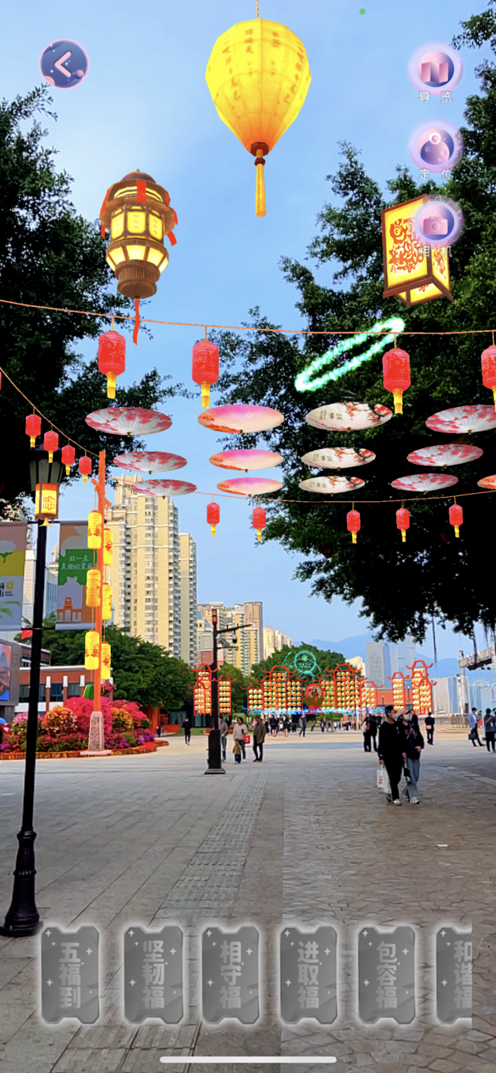 游客来到闽江之心青年广场打开手机里提前下载的“福元宇宙”APP注册登录之后点击“闽江之心AR游园会”就进入“福元宇宙”