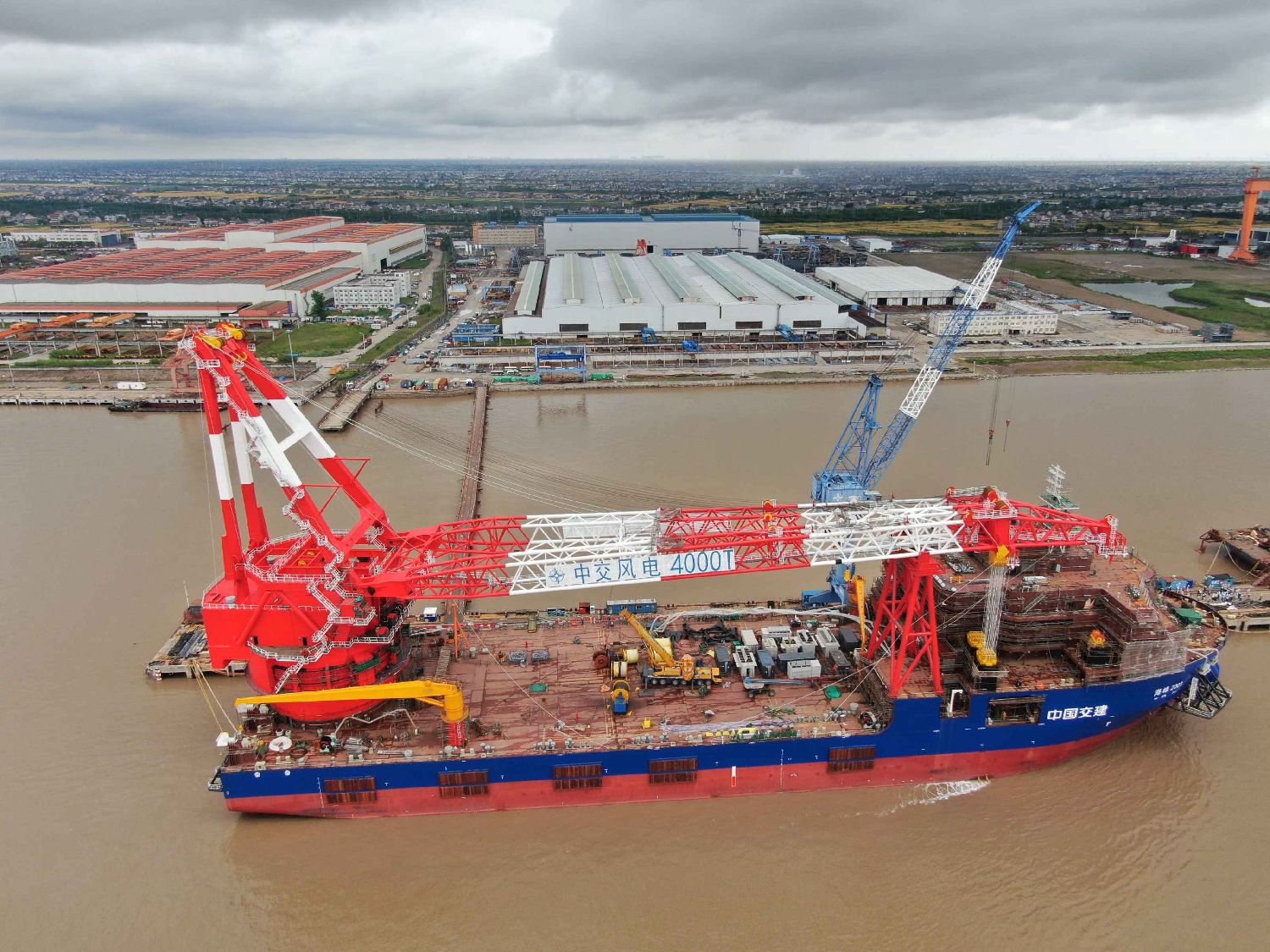 5月19日,江苏南通,即将于今年交付的中交风电4000T自航式全回转起重船。(图片来源:中新社)