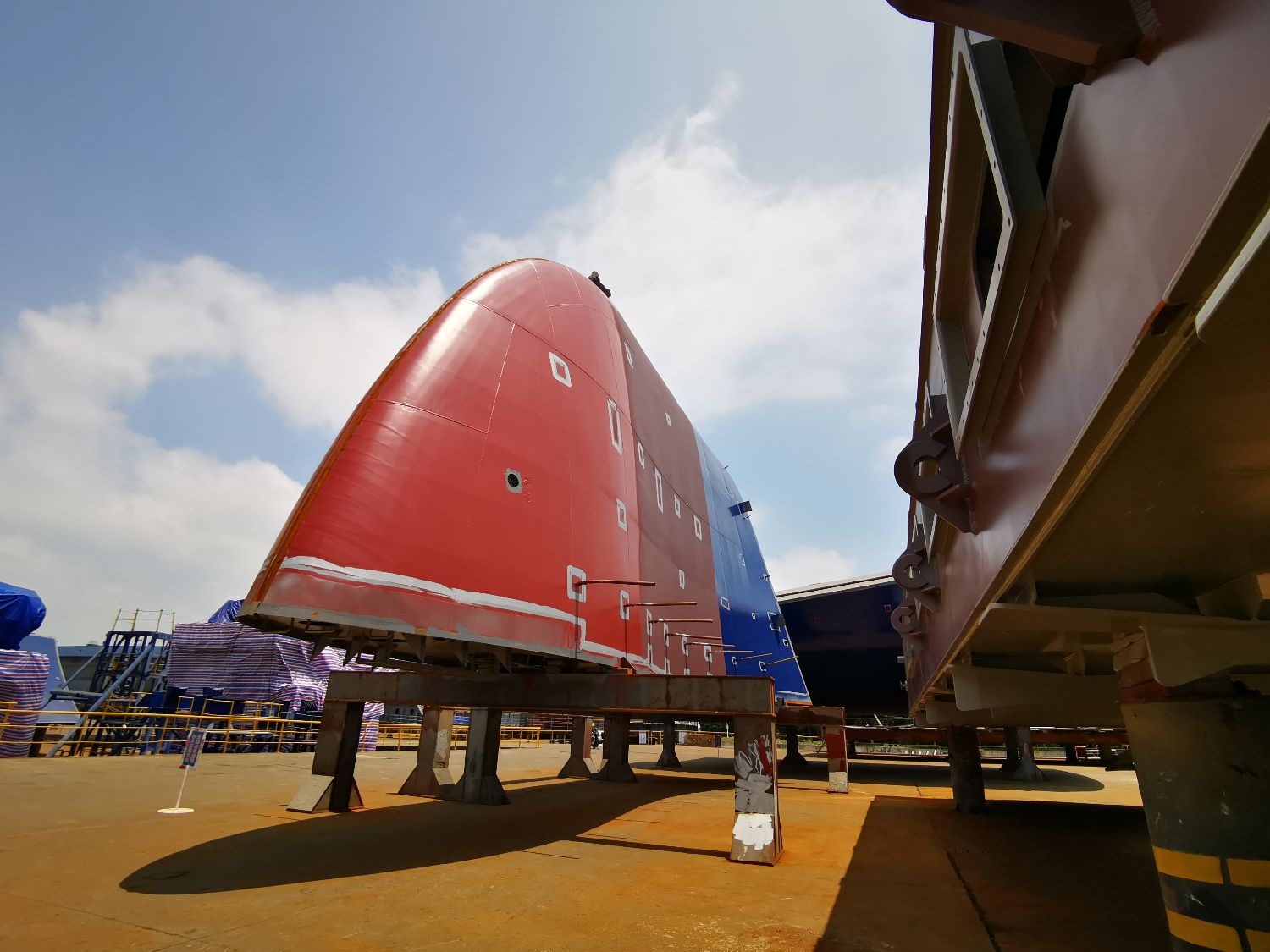 图为5月19日,在江苏靖江,江苏新时代造船有限公司内某处施工现场。(图片来源:中新社)