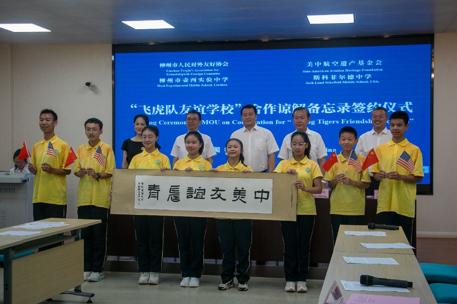 【本报讯】6月13日,广西柳州市壶西实验中学与内华达州拉斯维加斯斯科菲尔德中学举行线上签约仪式,缔结“飞虎队友谊学校”。双方以此延续“飞虎队”精神,增进中美青年传统友谊。