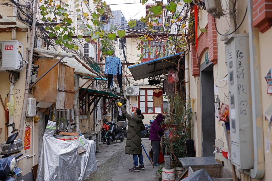 图为市民在上海“城中村”黄浦区梦花街上弄堂内生活。(图片来源:中新社资料图)