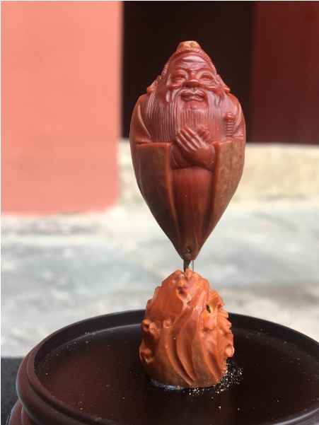 用黑榄核雕刻的孔子雕像。(图片来源:中新社)