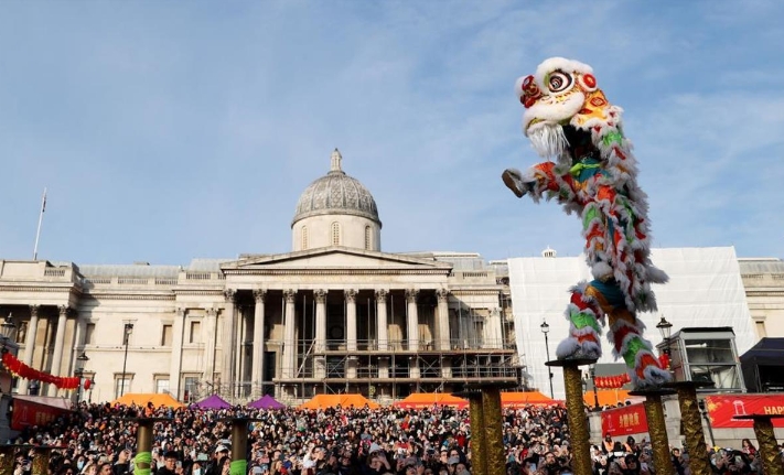 图为英国伦敦特拉法加广场今年1月22日举行春节庆典(图片来源:新华社)