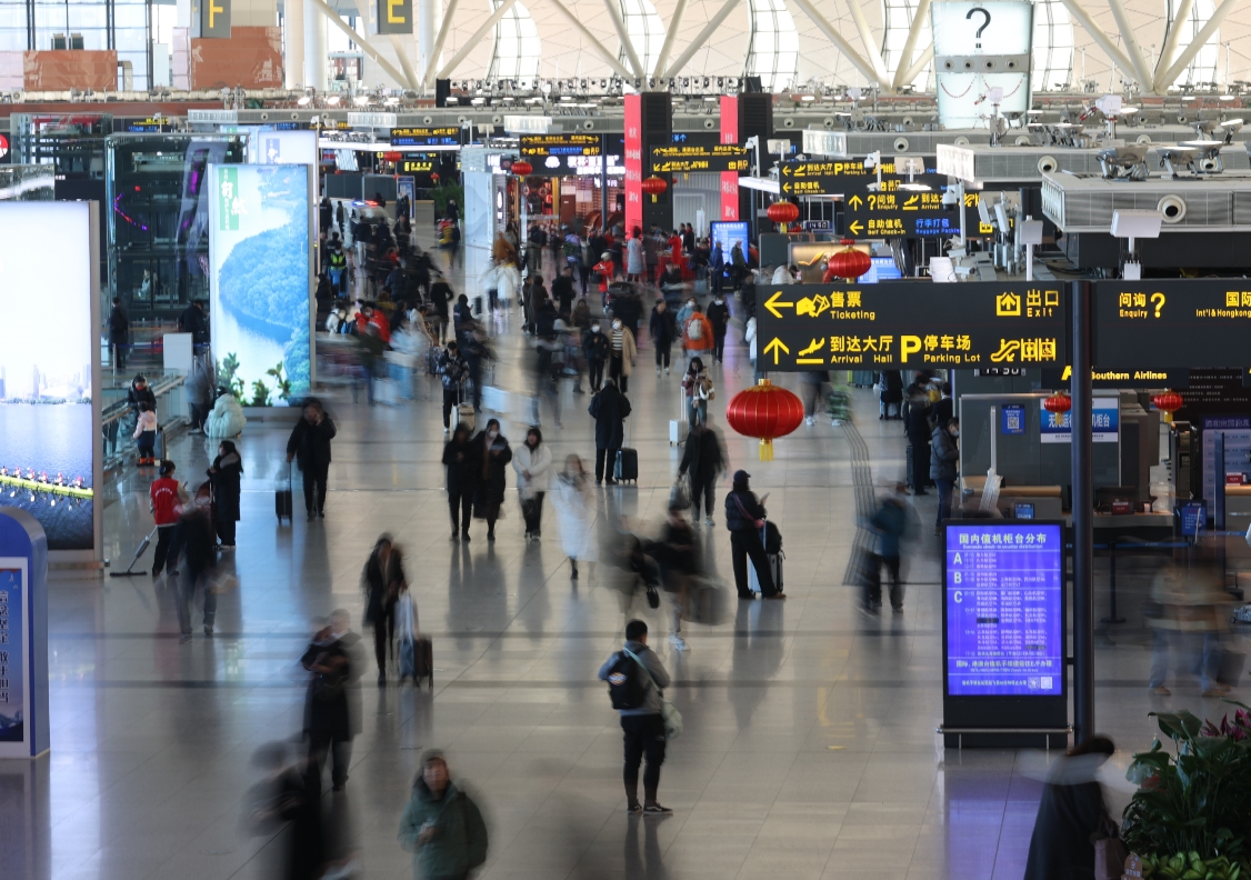 图为旅客在沈阳桃仙国际机场T3航站楼出行。(图片来源:中新社)