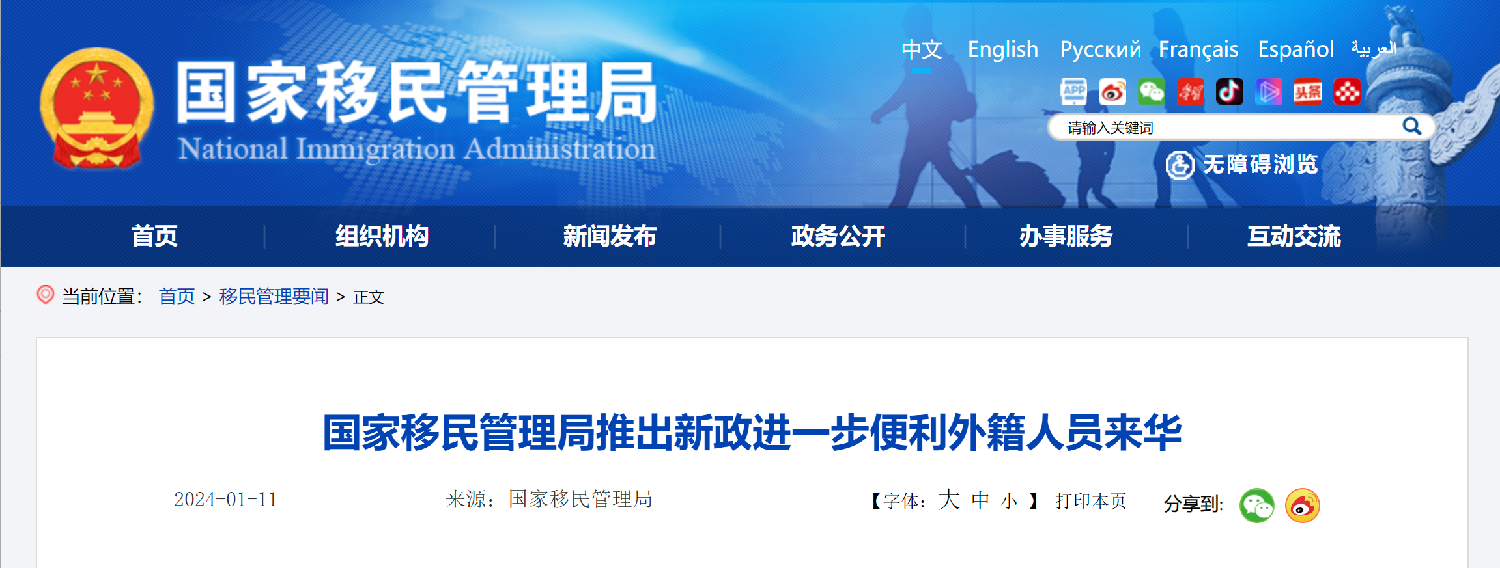 中国国家移民管理局官员表示,将主动协同有关主管部门,持续聚焦外国人到中国经商、学习、旅游的卡点堵点,持续深化移民管理服务改革和政策制度创新,加快推进制度型开放,积极参与营造一流的营商环境,主动服务促进构建新发展格局。