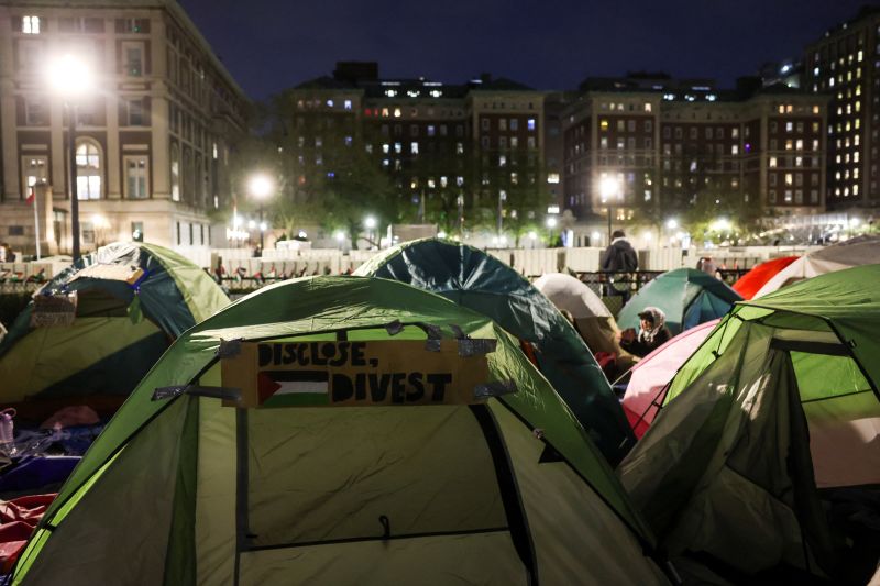 抗议者表示,除非哥伦比亚大学同意切断与以色列学术机构的联系,并承诺从与以色列有关的实体“完全撤资”哥伦比亚大学的资金,以及其他要求,否则他们不会散去。但哥伦比亚大学学生报纸的主编告诉美国有线电视新闻网,谈判各方似乎正在努力寻找中间立场。