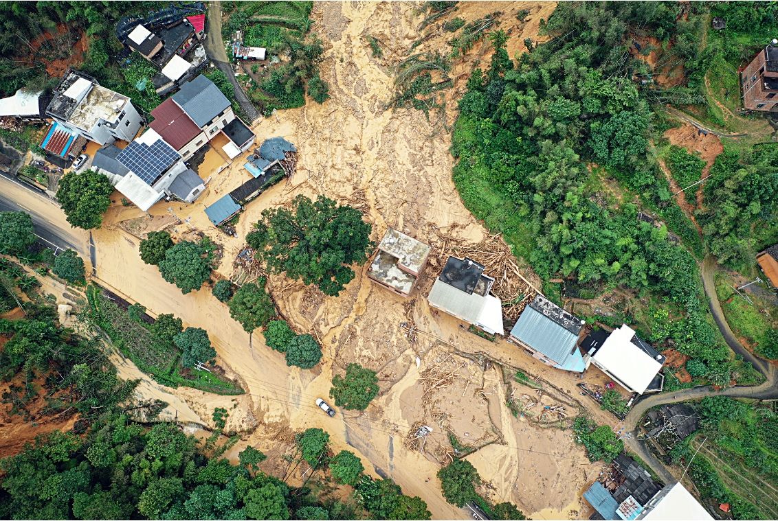 6月17日,福建省龙岩市武平县岩前镇,暴雨造成山体滑坡。(图片来源:中新社)