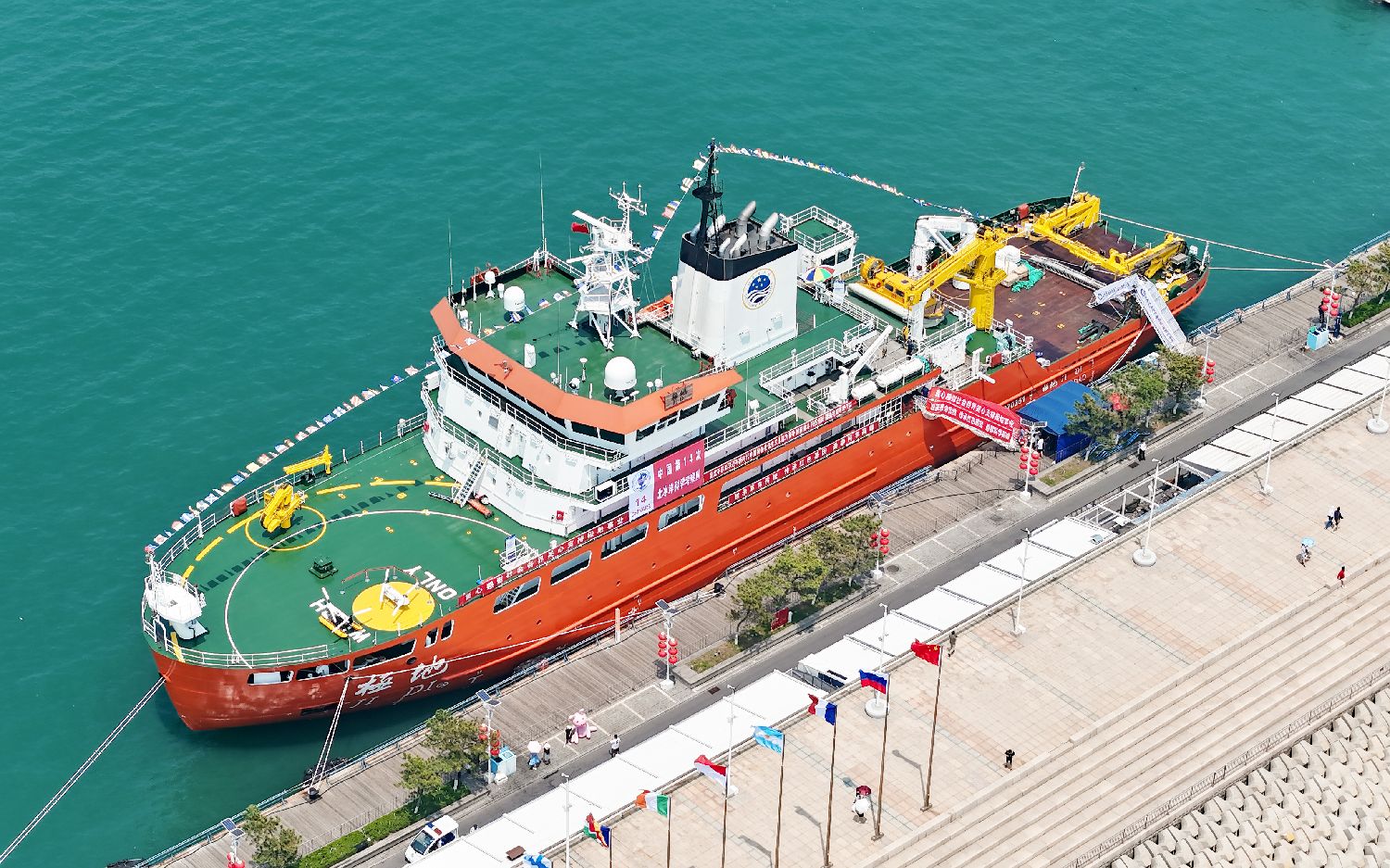 一同与“极地”号亮相青岛的还有中国第一艘自主建造的极地科考破冰船“雪龙2”号。