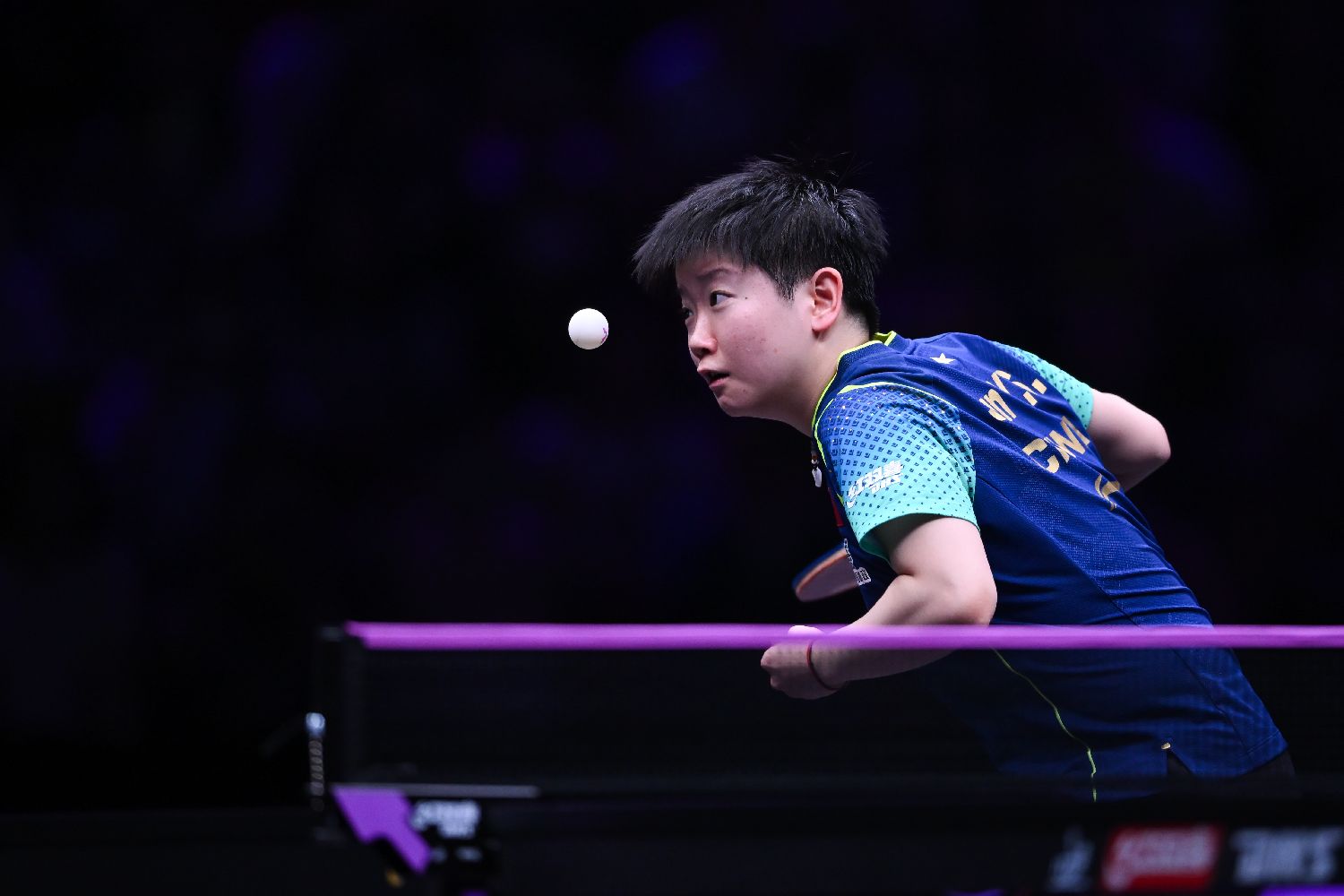 5月30日,世界乒乓球职业大联盟(WTT)重庆冠军赛在重庆市巴南区开赛。图为孙颖莎在女子单打比赛中发球。(图片来源:中新社)