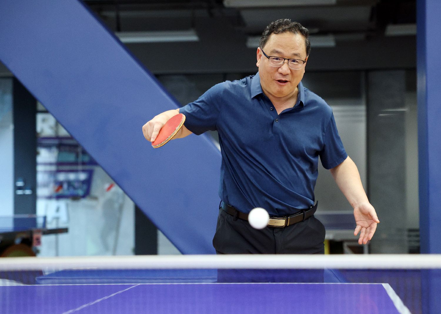 刘克峰7月22日在北京清华大学校园内打乒乓球。(图片来源:中新社东西问客户端)