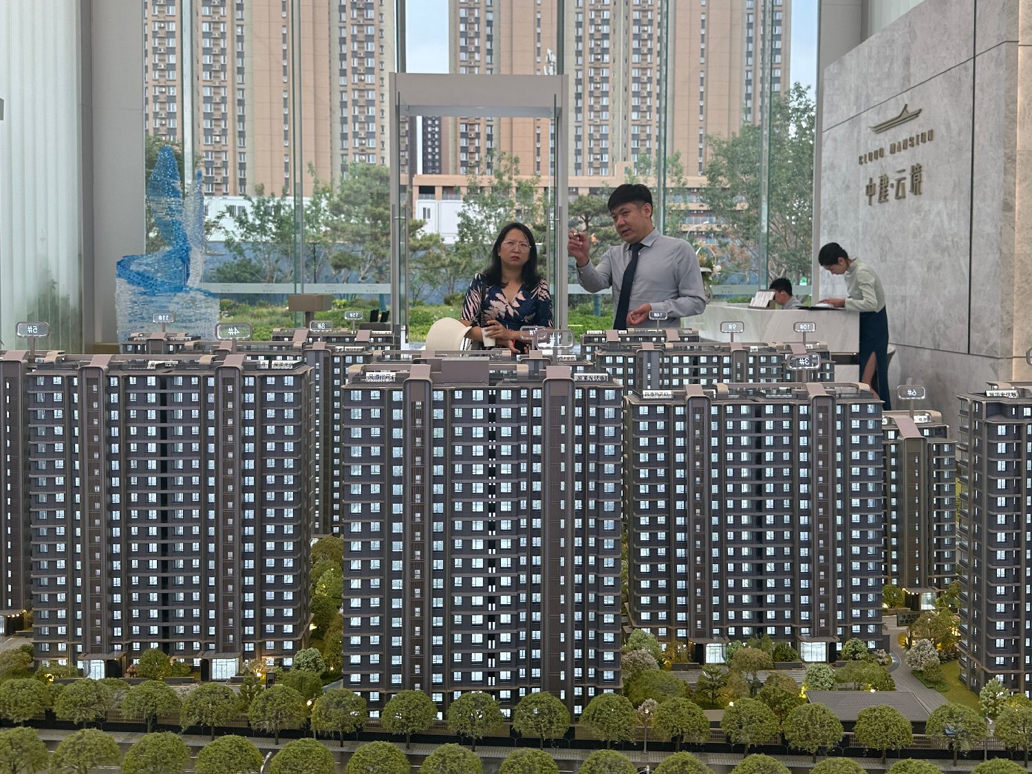 7月1日,购房者在北京一楼盘售楼处了解楼盘信息。(图片来源:中新社)