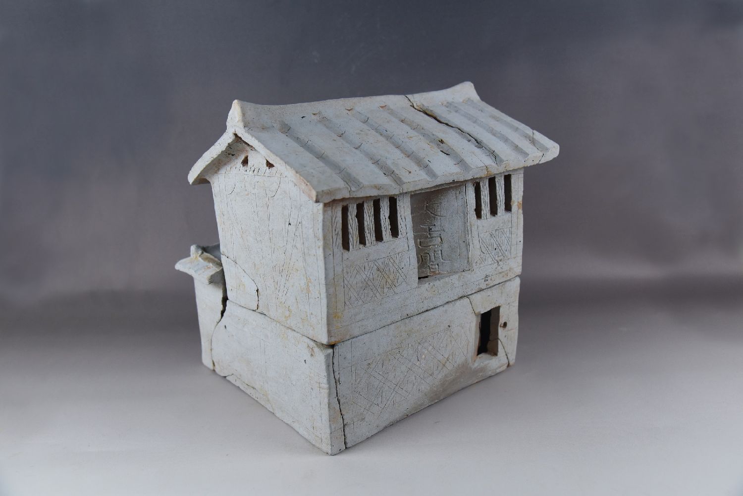 东汉墓出土的“大吉间”陶屋。(图片来源:中新社)
