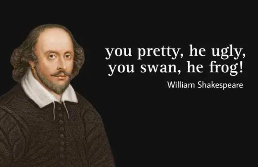 “You swan,he frog”梗爆火后,有外籍网民将此句与莎士比亚肖像P在一起,笑指其精妙。(图片来源:郑州“大象新闻”微信公众号)
