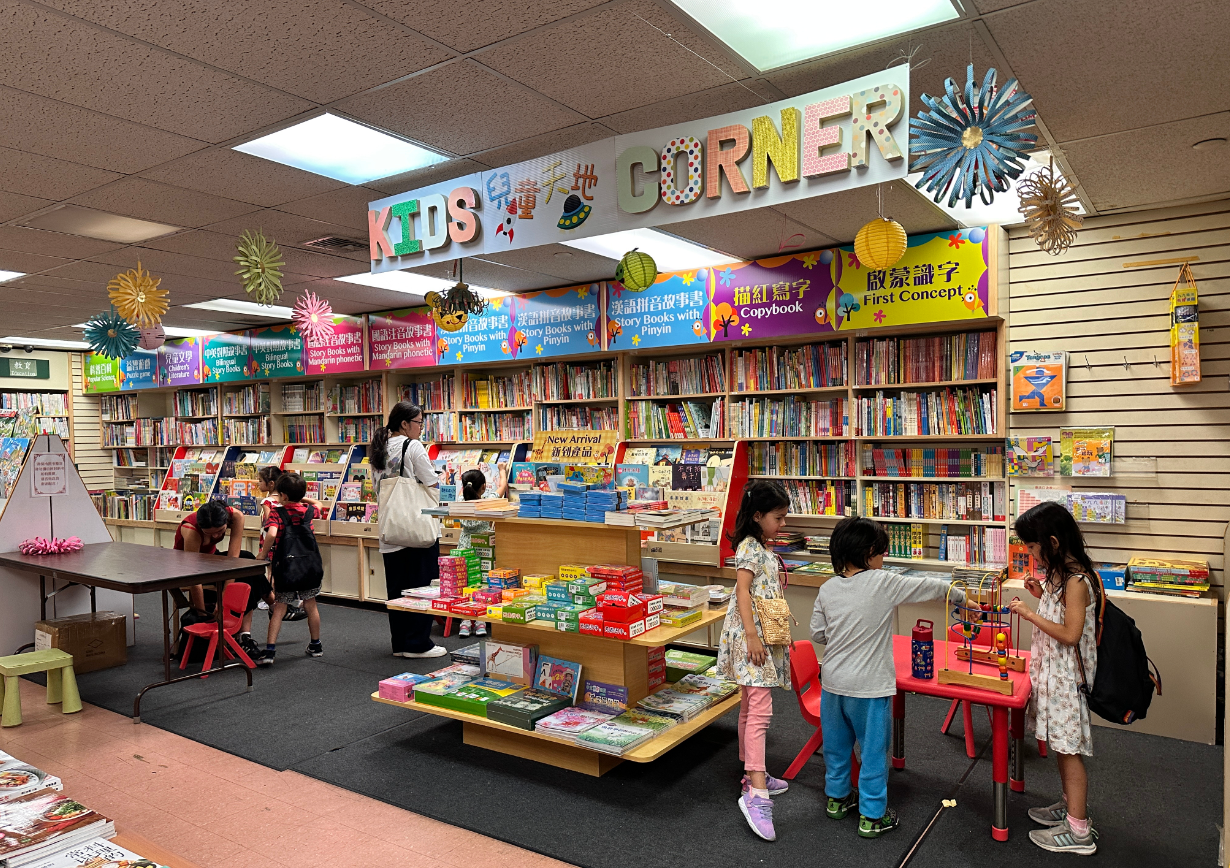 近日,读者在纽约东方书店儿童天地专区选购图书。(图片来源:中新社)