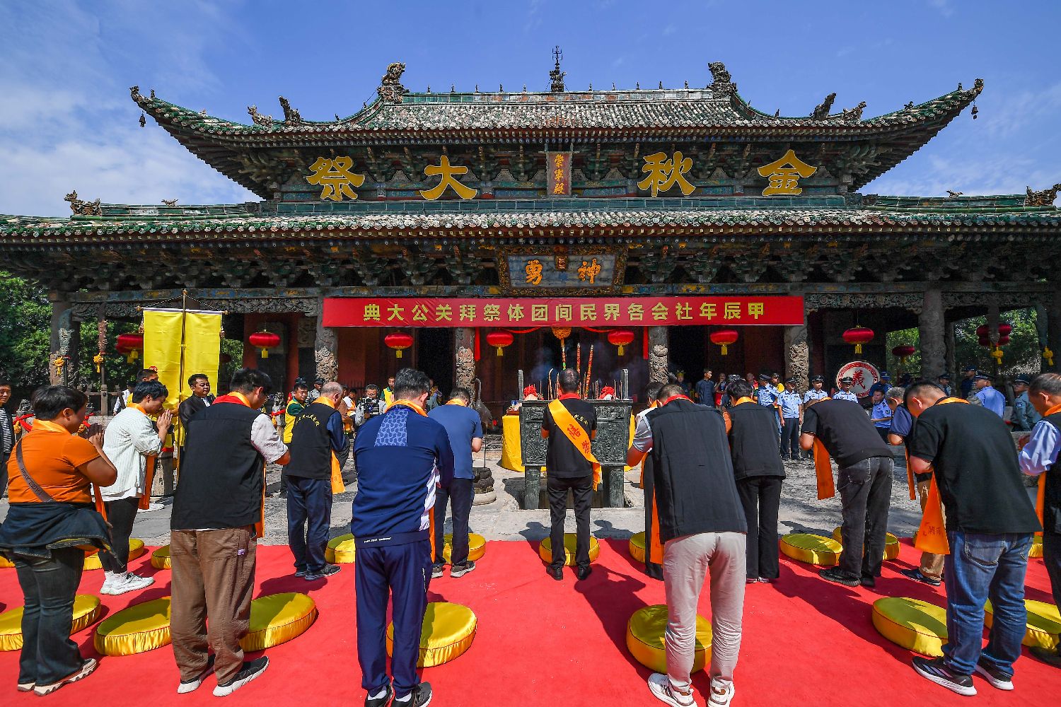 甲辰年社会各界民间团体祭拜关公大典23日在“关公故里”山西运城举行。(图片来源:中新社)