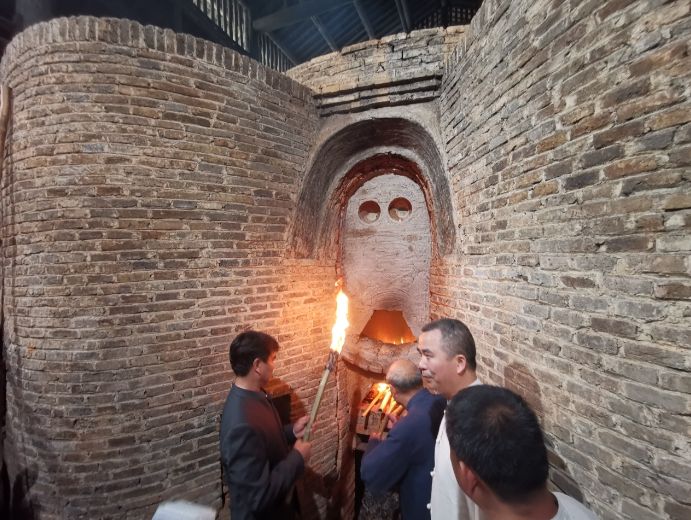 中新社报道,高温颜色釉、青花釉里红、茶叶末釉等多种工艺。“经过连续24小时不间断投柴,明天中午歇火后再经过24小时自然冷却,预计21日将正式开窑。”